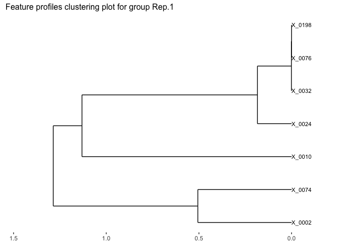We can also identify the optimal clusters of microbial features based on the clustering results. Here we select features with correlation distance less than 0.15 for clustering.