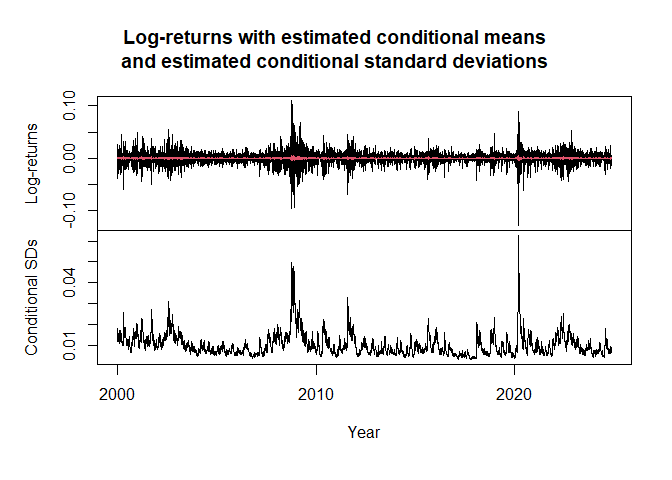 This is a basic example which shows you how to fit a model of the EGARCH family to the Standard and Poor’s 500 daily log-returns.