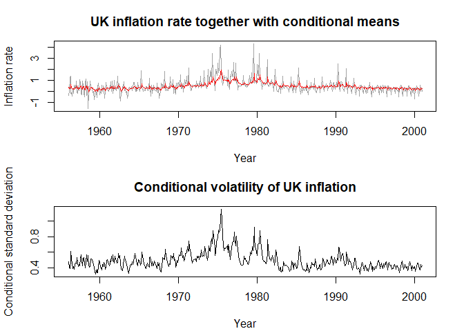 with the monthly inflation rate of the UK from January 1965 to December 2000. This second series is formatted as a time series of class "ts"