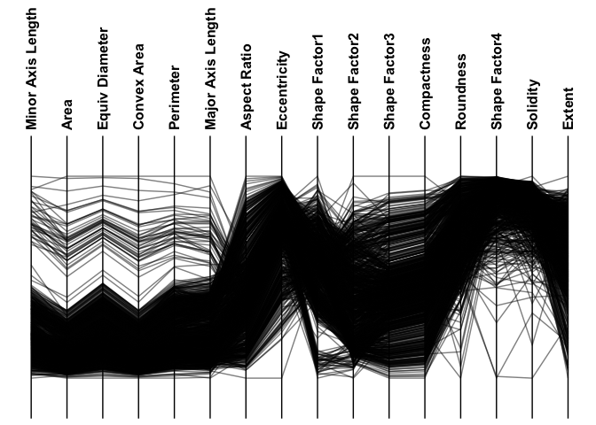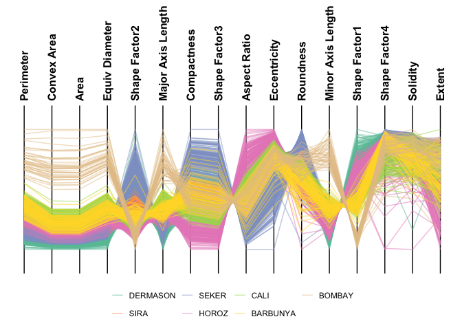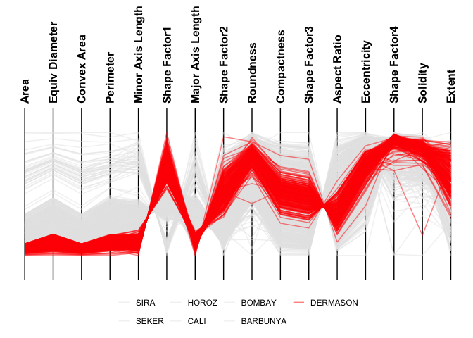- ggparallel: parallel coordinate plots (PCPs) for examining large datasets with mostly quantitative features.