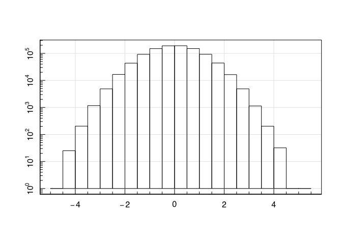 maghist(rnorm(1e6), log='y', grid=TRUE)