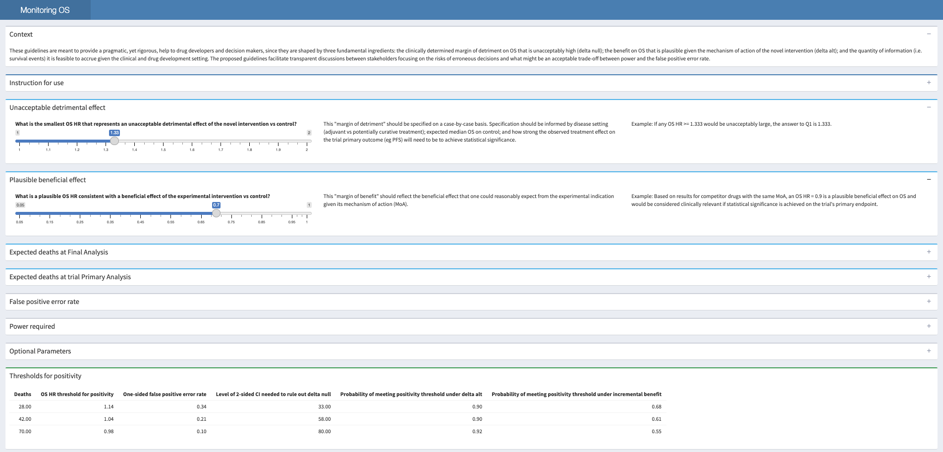 Monitoring guidelines assume that the hazard ratio (HR) can adequately summarize the size of the benefits and harms of the experimental intervention vs control on overall survival (OS). Furthermore, guidelines assume that an OS HR < 1 is consistent with a beneficial effect of the intervention on OS (and smaller OS HRs <1 indicate increased efficacy). For more details about how OS monitoring guidelines are formulated, please refer to our paper.