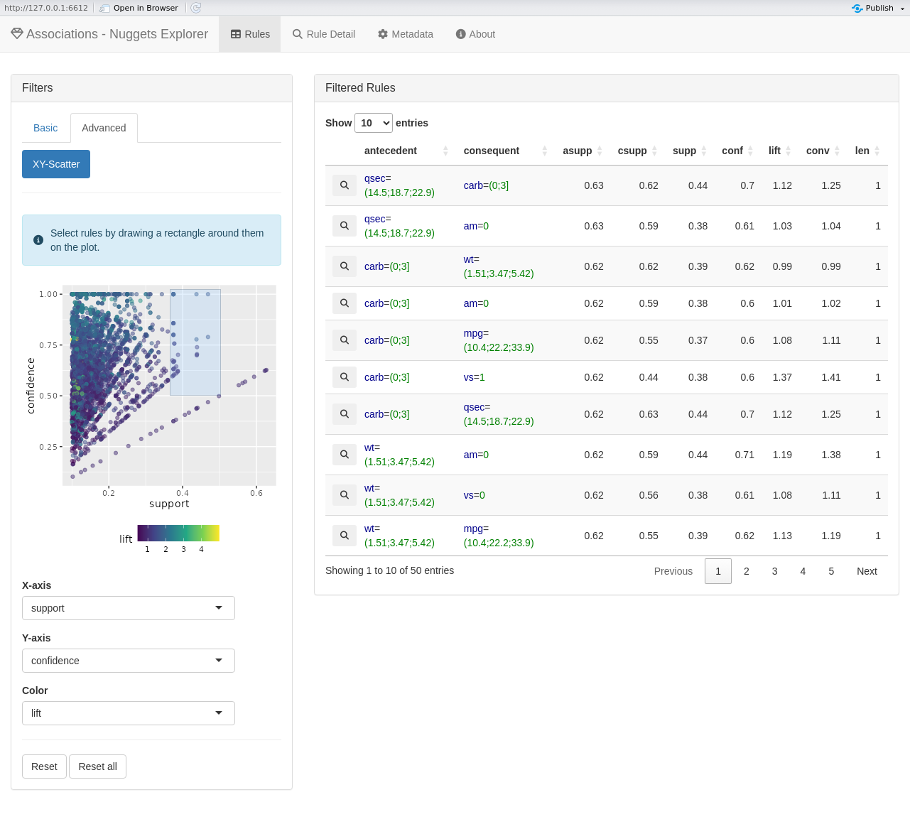 # Explore the found rules interactively