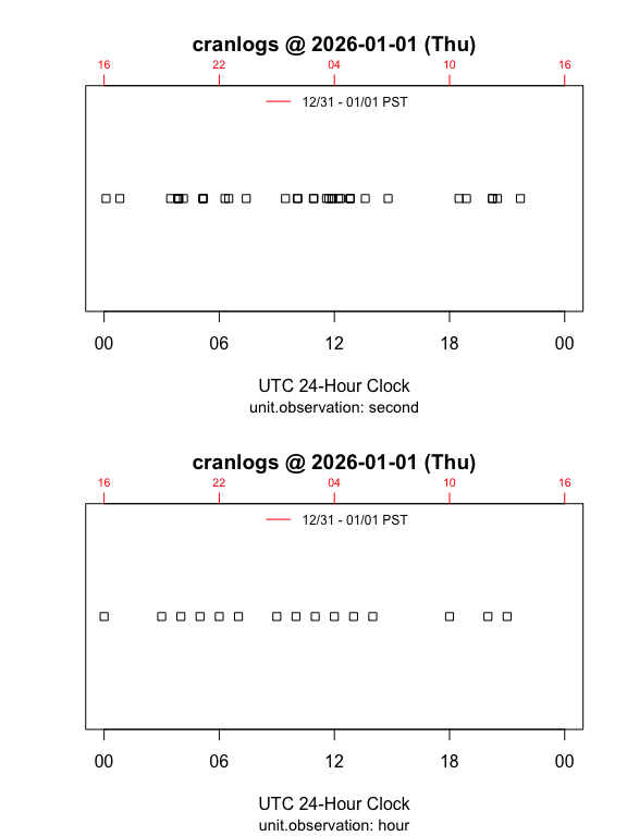 Keep in mind that 17:00 UTC is not a hard deadline. Barring server issues, the logs are usually posted a little before that time. I don’t know when the script starts but the posting time seems to be a function of the number of entries: closer to 17:00 UTC when there are more entries (e.g., weekdays); earlier than 17:00 UTC when there are fewer entries (e.g., weekends). Again, barring server issues, the ‘cranlogs’ results are usually available before 18:00 UTC.