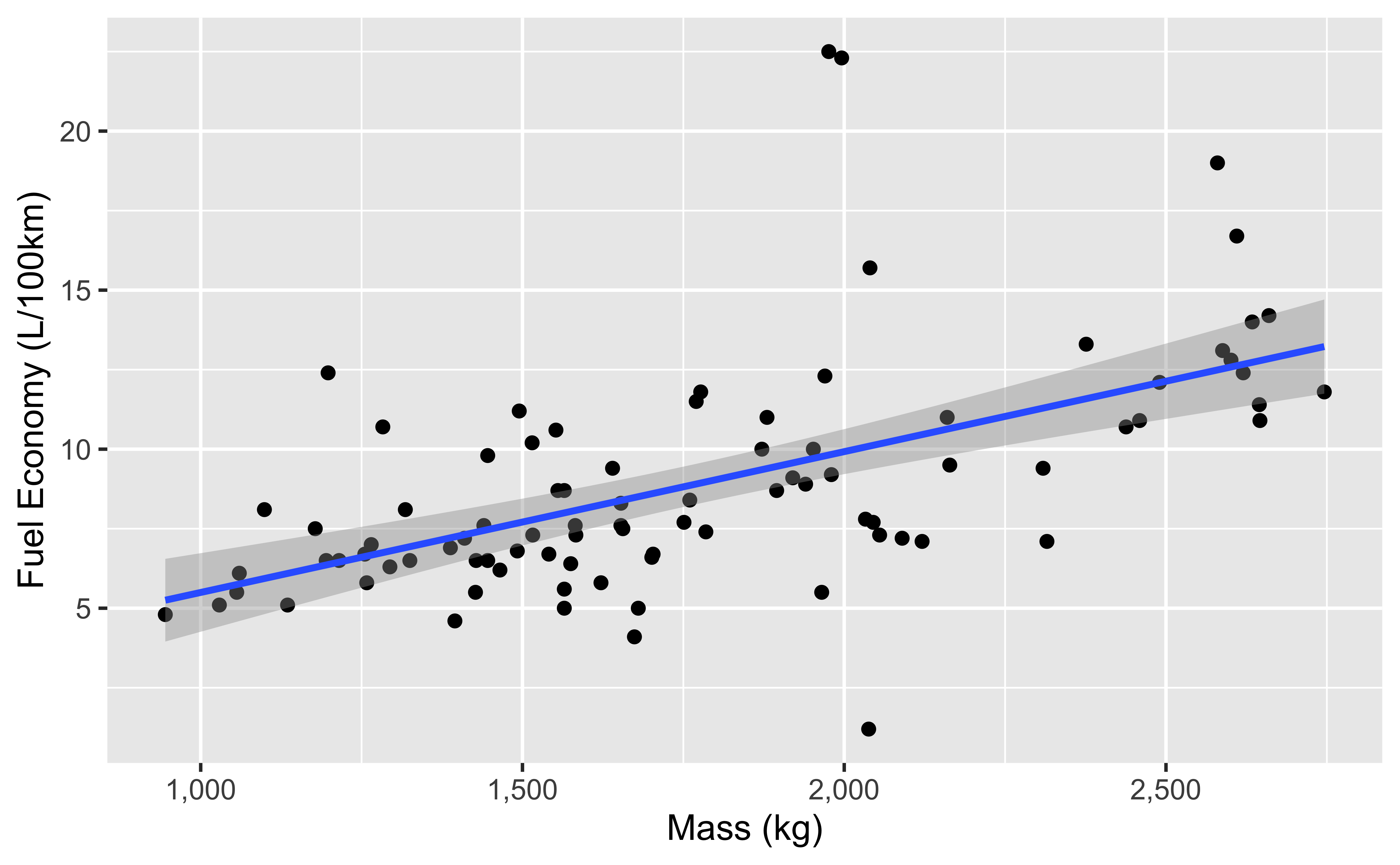 ggplot(qatarcars, aes(x = mass, y = economy)) +