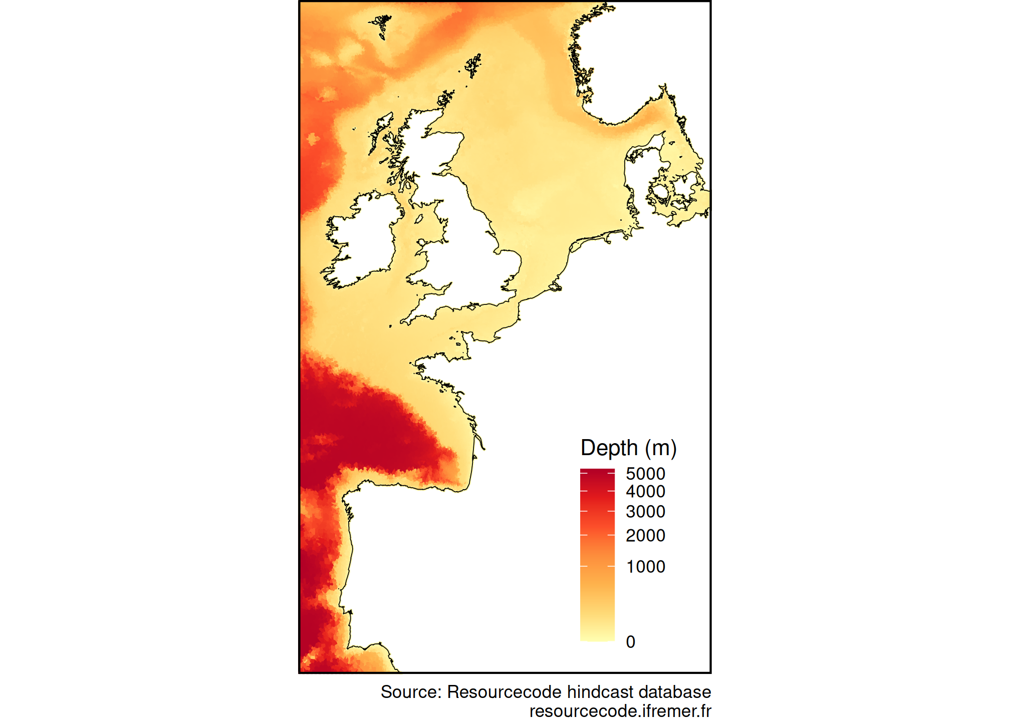 resourcecode::rscd_mapplot(rscd_field$depth, name = "Depth (m)", transform = "sqrt")
