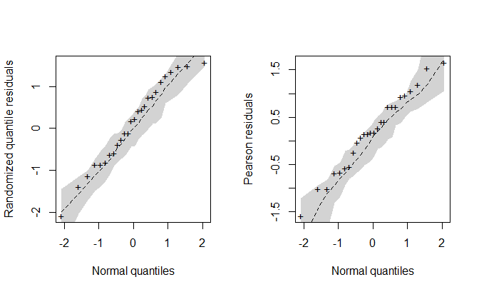 This package provide complete estimation and inference for the parameters as well as normal probability plots of residuals with a simulated envelope, useful for assessing the goodness-of-fit of the model. The implementation is straightforward and similar to other popular packages, like betareg and glm, where the main function is sdlrm(). Below is an example of some functions usage and available methods.