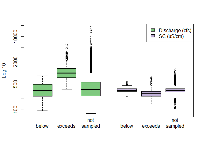 c("Discharge (cfs)", "SC (uS/cm)"),